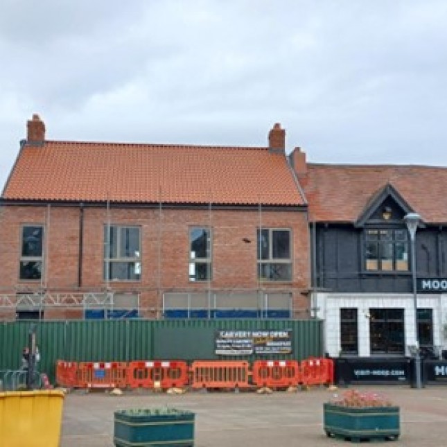 Meldrum Construction are continuing the construction of the works, which is progressing well. The walls are up and the roof works are complete, concluding the second phase of Bedlington's Town Centre Regeneration project. The project is on track to complete in Spring 2025.