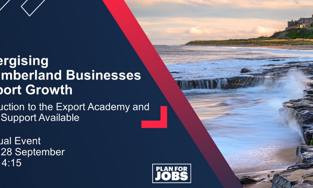Join the Department for International Trade (DIT) North East and Northumberland County Council for a free virtual event, designed to showcase the training, support and funding opportunities available in your area to expand your customer base internationally.