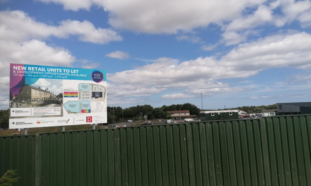 Work had started on the regeneration of the Market Place, which included a new terrace of shop units and apartments above. Following the demise of the contractor Tolent, Advance Northumberland took over the project in March 2023 and work restarted in April.